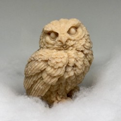 Savon artisanal en forme de Chouette, pièce unique à l'aloe vera, non parfumé et spécialement conçu pour les peaux sensibles.
