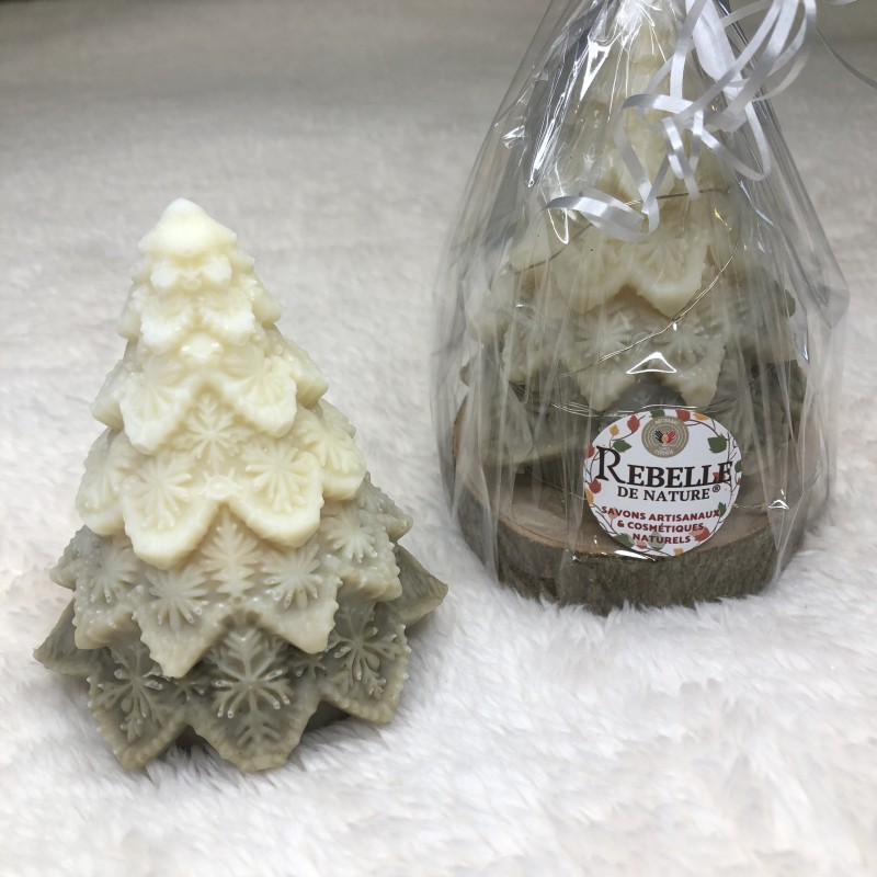 Plongez dans la magie de l’hiver avec notre Sapin Flocon, un savon artisanal unique entièrement fabriqué à la main dans notre savonnerie Rebelle de Nature®.