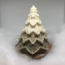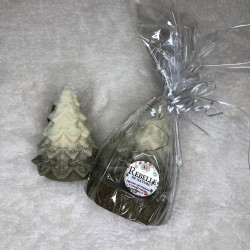 Un savon artisanal en forme de sapin givré, sculpté de flocons délicats et accompagné d’une guirlande lumineuse pour un effet féérique.