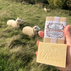 Savon artisanal saponifié à froid, enrichi en lait de brebis local.
