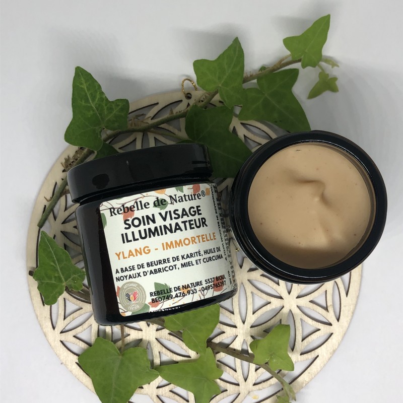 Le Soin visage illuminateur Immortelle & Ylang‑Ylang est un soin naturel conçu pour apporter lumière, confort et nutrition à la peau du visage.